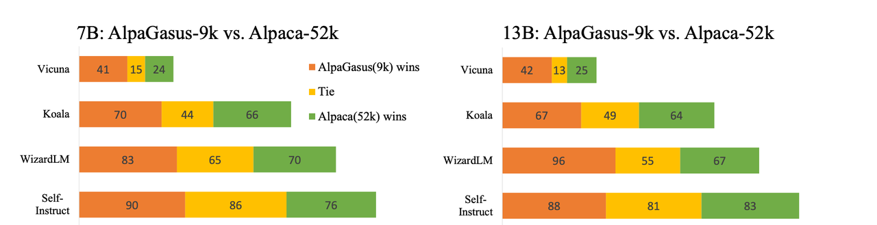 AlpaGasus 在 Alpaca 指令集基础上,借助 LLM 进行了进一步过滤,将低质量的指令数据过滤掉。