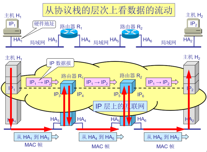 硬件地址对网络层不可见,换句话说,数据链路层及以下的通信对于网络层是透明的。